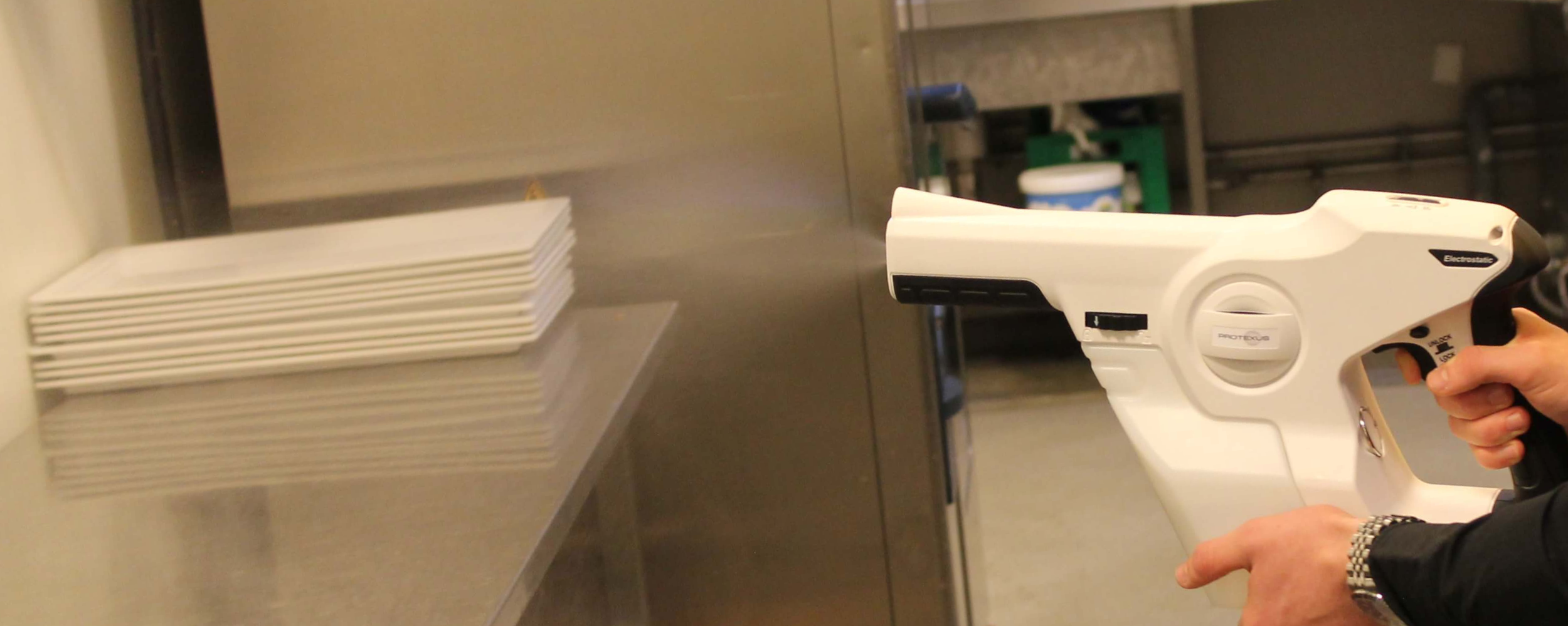 Med vores elektrostatiske sprayere fra Protexus bruger man op til 68% mindre desinfektionsmiddel og sparer op til 81% af den tid, man bruger på desinfektionen. Det skyldes den effektive dyse, som sikrer et ensartet lag på overfladen hver gang.