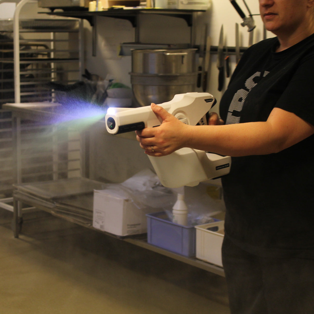 De elektrostatiske sprayere distribuerer væsken 360-grader omkring den overflade, der sprøjtes mod. Det giver en desinficerende belægning, der giver 3x mere dækning end traditionelle sprayflasker, spande eller klude.