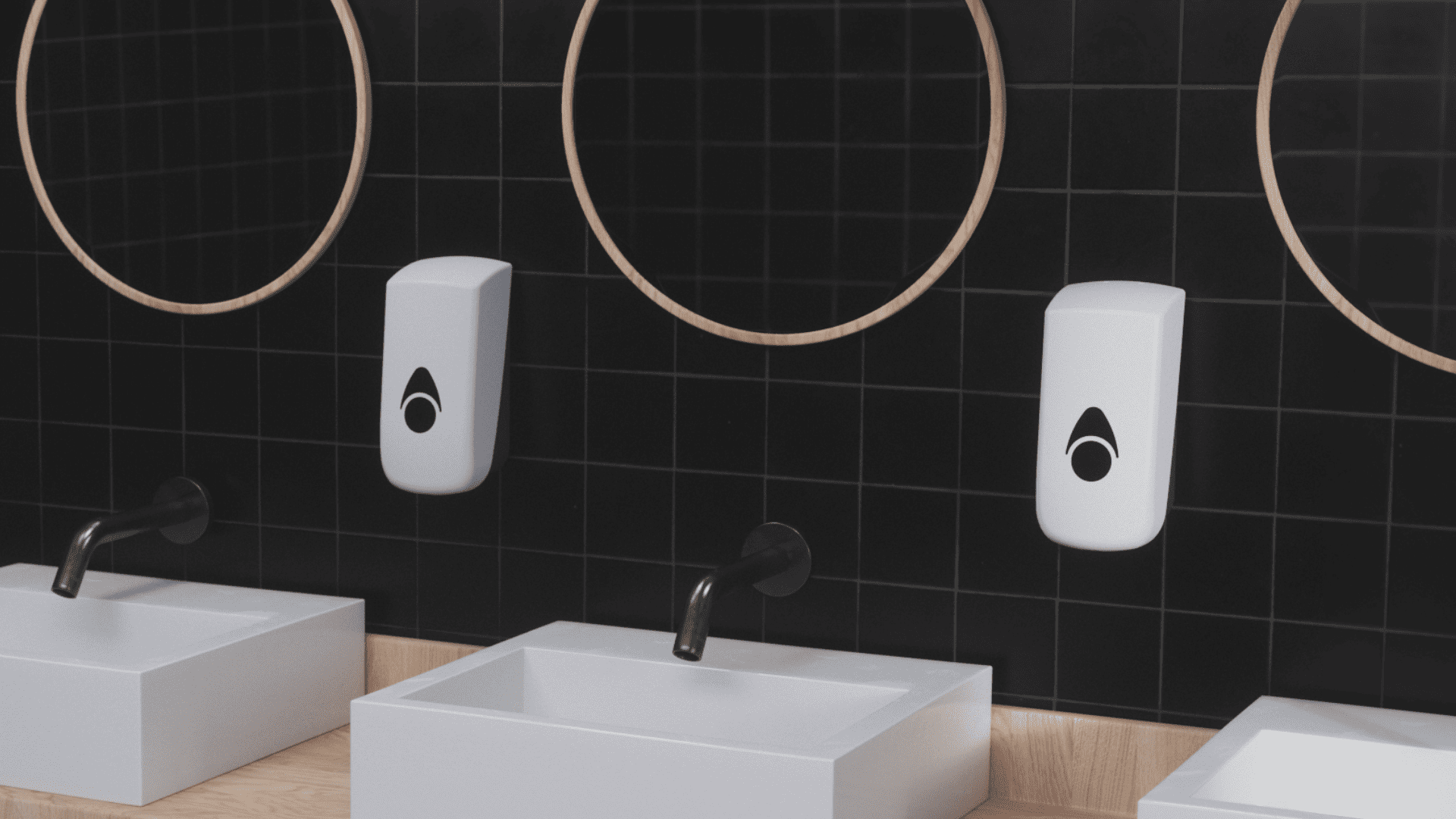 Dispenseren kan fås med 2 pumper: en pumpe til skumsæbe og en pumpe til flydende sæbe.