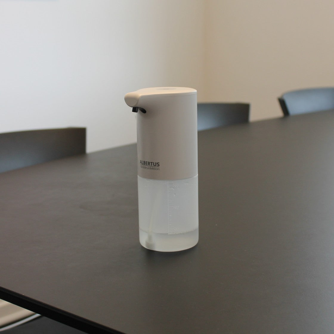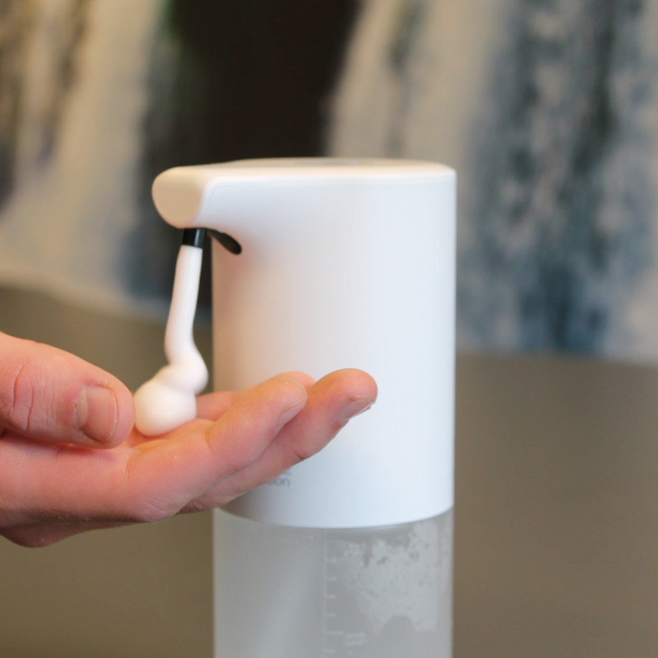 Dispenseren anvender en hurtig sensor, som hurtigt opfanger din hånd, når du placerer den under dysen. Hånddesinfektionsmidlet vil komme ud som skum, hvilket gør det nemmere at distribuere på hænderne. Skumfunktionen betyder også, at der bruges væsentligt mindre hånddesinfektionsmiddel pr. gang, og at der er mindre spild.