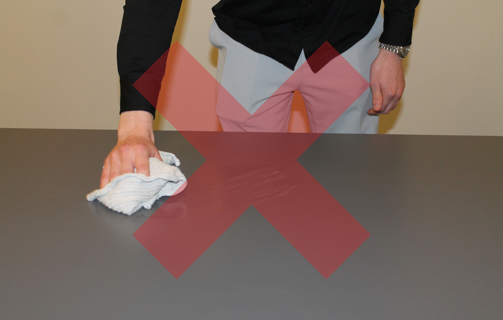 Med Safesprayeren undgår du ikke kun det fysisk hårde arbejde, du undgår også at distribuere væsken med en klud, som er nødvendigt når man anvender en manuel triggerspray. Det skyldes den effektive dyse på sprayeren, som distribuerer desinfektionsmidlet effektivt og ensartet på overfladen.