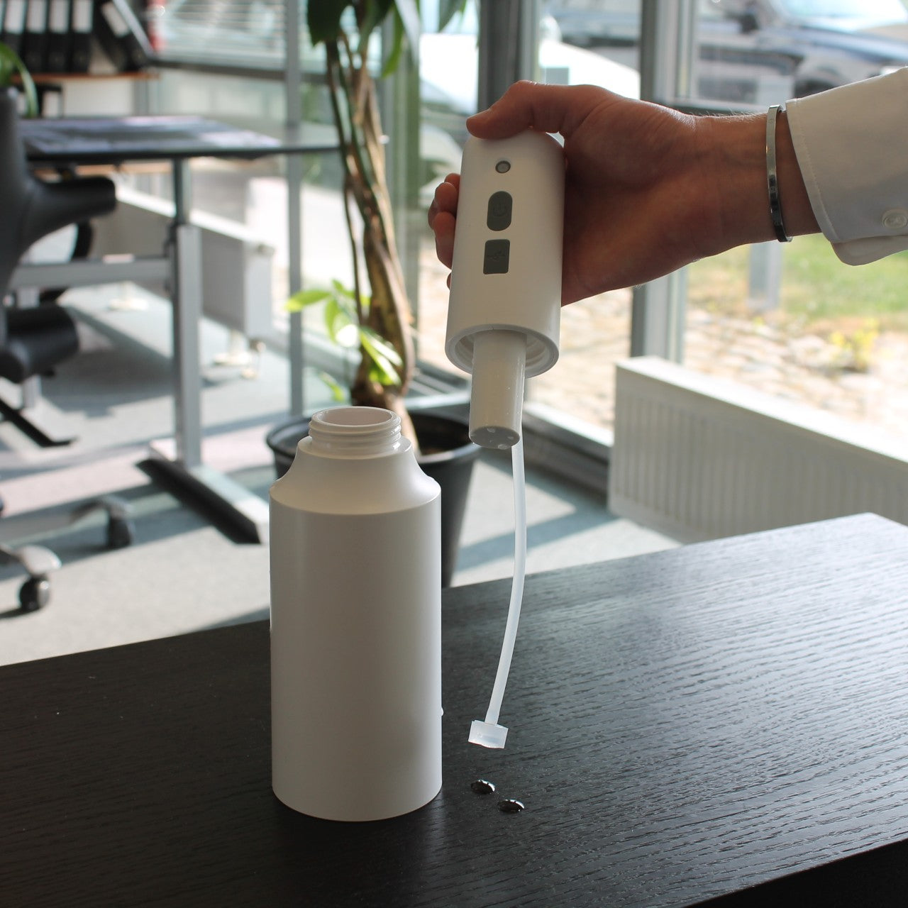 Safesprayeren er en elektrisk sprayer egnet til vandbaserede desinfektionsmidler, som har til formål at gøre desinficering af kontaktoverflader nemt og effektivt. Med sit ergonomiske design er sprayeren den ideelle partner til desinficering af kontaktoverflader herunder: borde, køkkenoverflader, badeværelsesoverflader, dørhåndtag, toiletter, hylder og generelt overflader med hyppig berøring.
