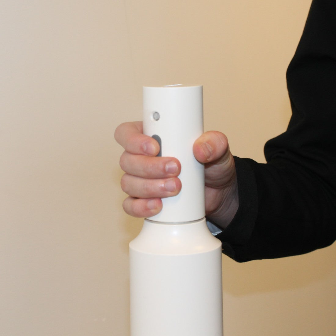 - Påfyld det ønskede vandbaserede desinfektionsmiddel ved at skrue tanken af.