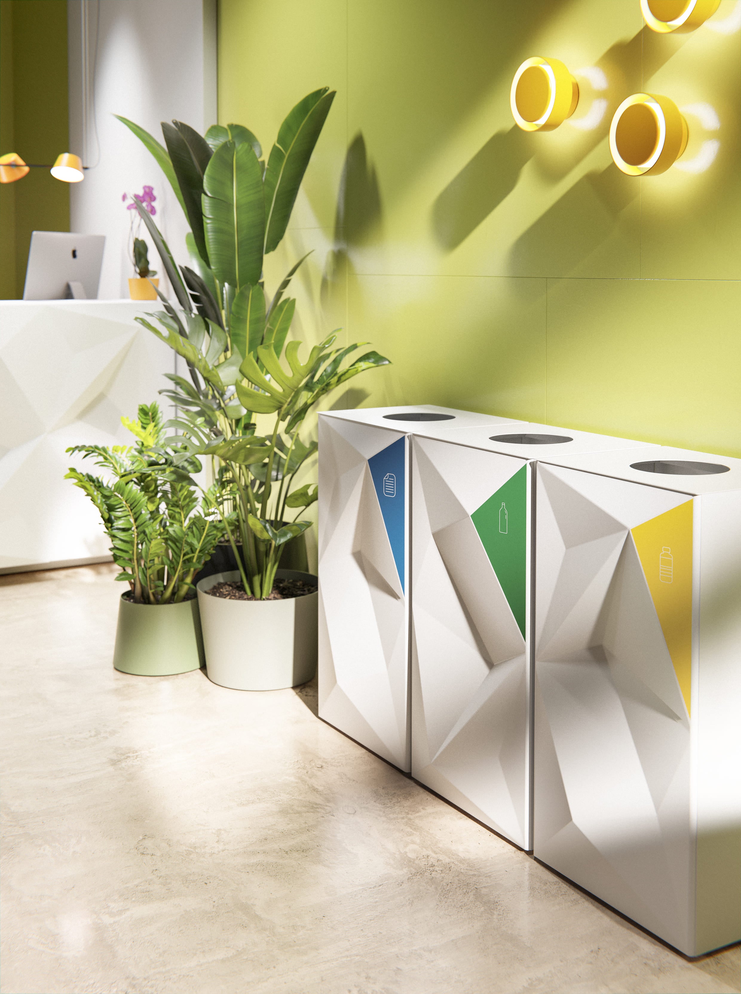 Med en kapacitet på hele 86 liter er Vevey ideel til større rum, receptioner, kontormiljøer eller andre steder, hvor både funktionalitet og æstetik vægtes højt. Den fås i flere farver og med piktogrammer, så den let kan indgå i et affaldssorteringsmiljø.